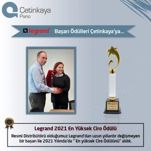 Her sene olduğu gibi 2022 yılı içerisinde de Legrand 2022 En Yüksek Ciro Ödülü’nü Çetinkaya Pano’ya vermiştir.
